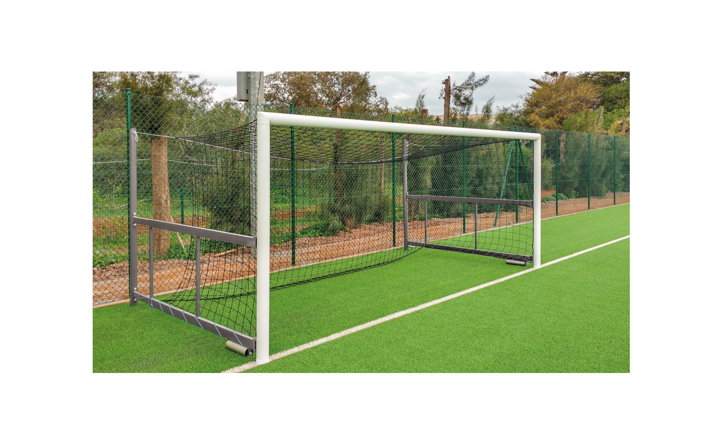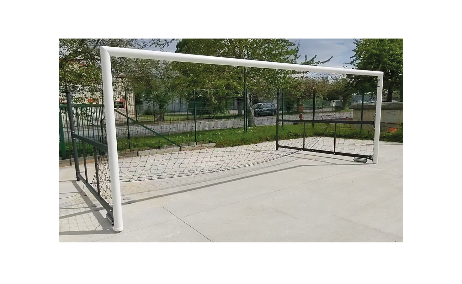 The depth of these goals can be adjusted from 7 to 11.4 ft, or customized to a fixed frame upon request. The Ø 3.1 inches rear masts come with their sealing sockets. Electrogalvanized steel rollers, 11.8 inches long, facilitate easy folding and deployment of the goals, with the pivot axis located in the sockets.