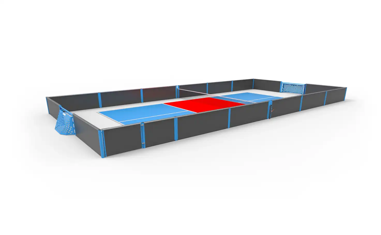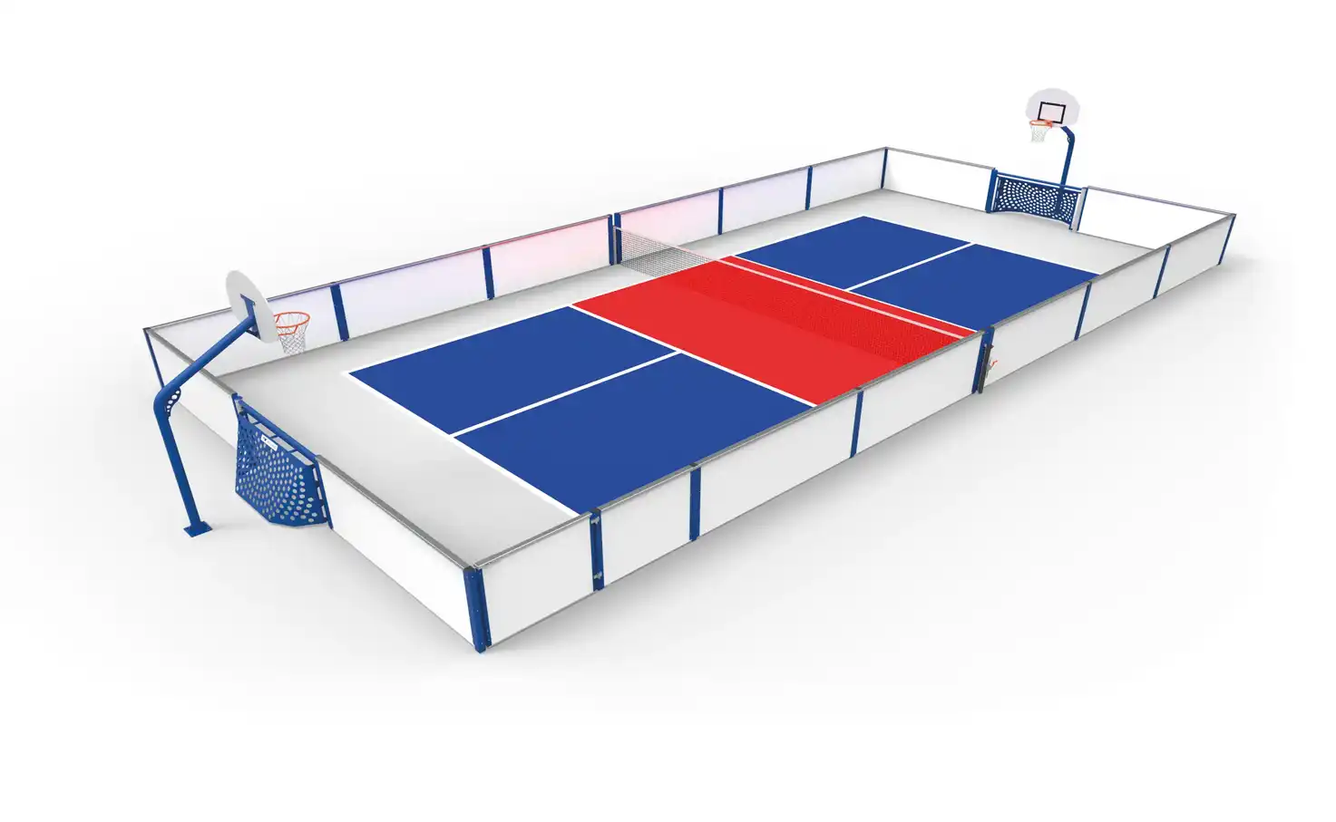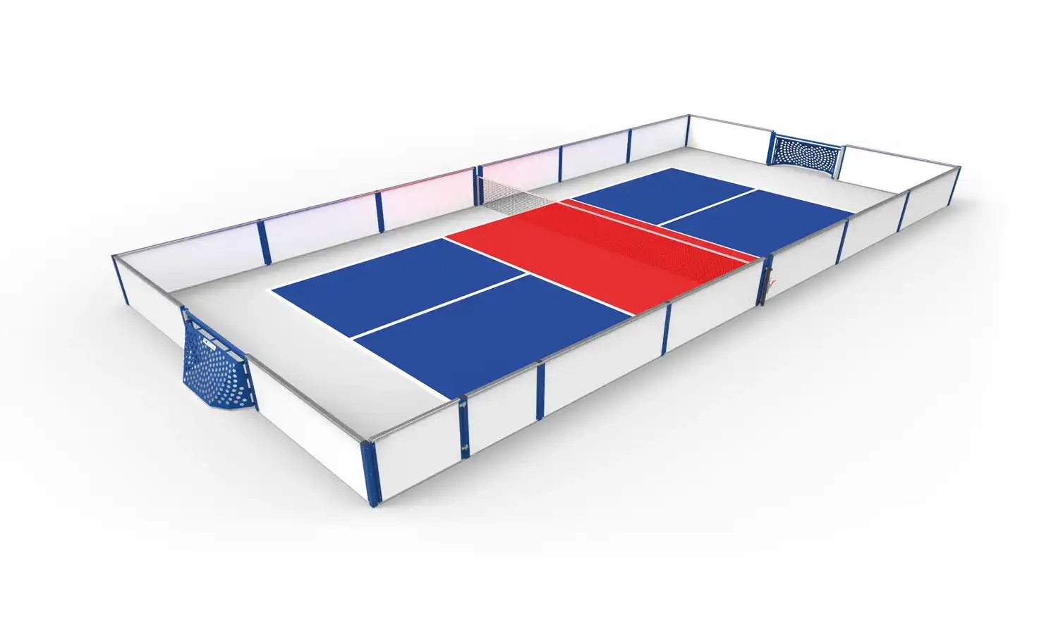 Why choose between pickleball and football when you can have both? This pickleball court, with its pickleball dimensions and markings, can be transformed into a soccer pitch thanks to the Brazilian goals at opposite ends. All you have to do is remove the net! If you prefer basketball to soccer, you can add basketball goals!
