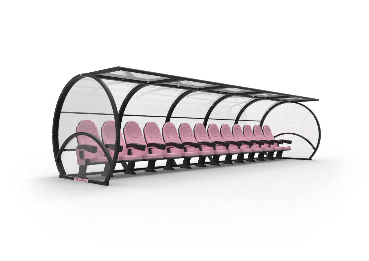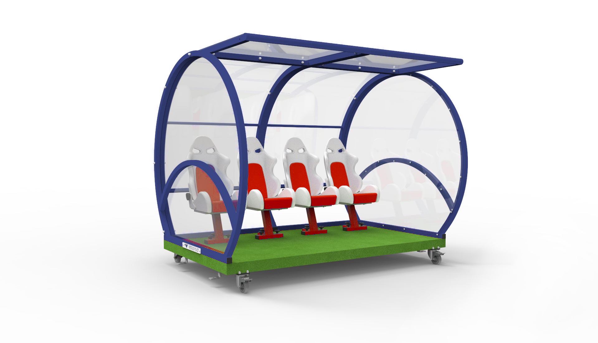 Our VIP team shelter are highly adaptable, allowing you to add or remove modules to accommodate up to 23 seats. The layout can be configured in 1 or 2 rows, and you can choose the type of seating that best suits your needs. A variety of colors are available for the structure, as well as the side and back protections. The many possibilities offer to you, give you the opportunity to personalise your shelter in your club’s colours !